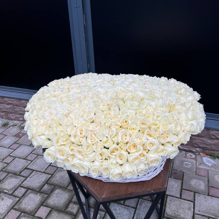 501 белая роза в корзине