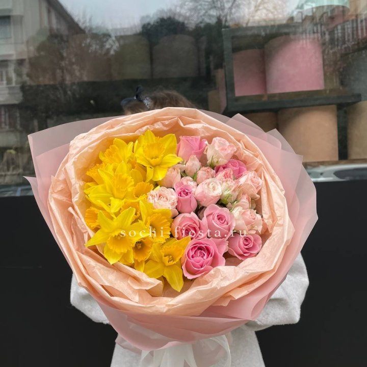 Букет роз и нарцисс