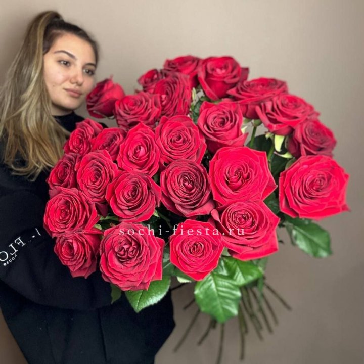25 высоких красных роз