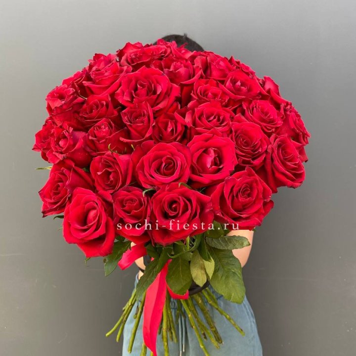 35 красных роз под ленту