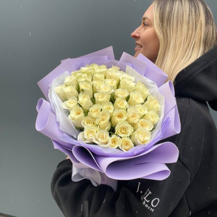 Букет из 51 белой розы (Кения)