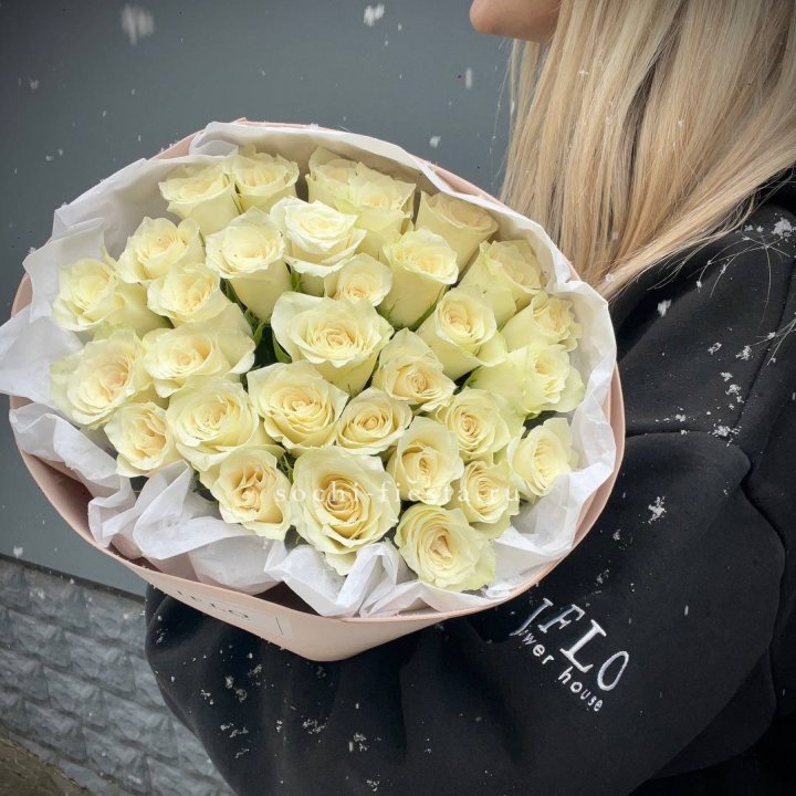 31 белая роза в оформлении