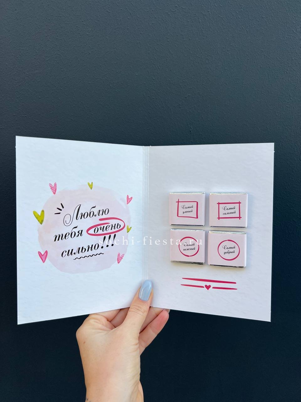 Открытка с любовными посланиями на шоколаде,