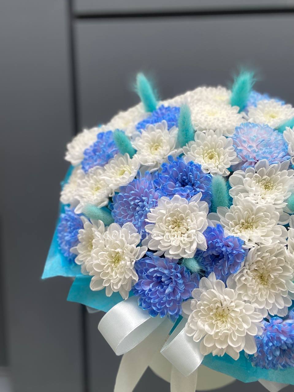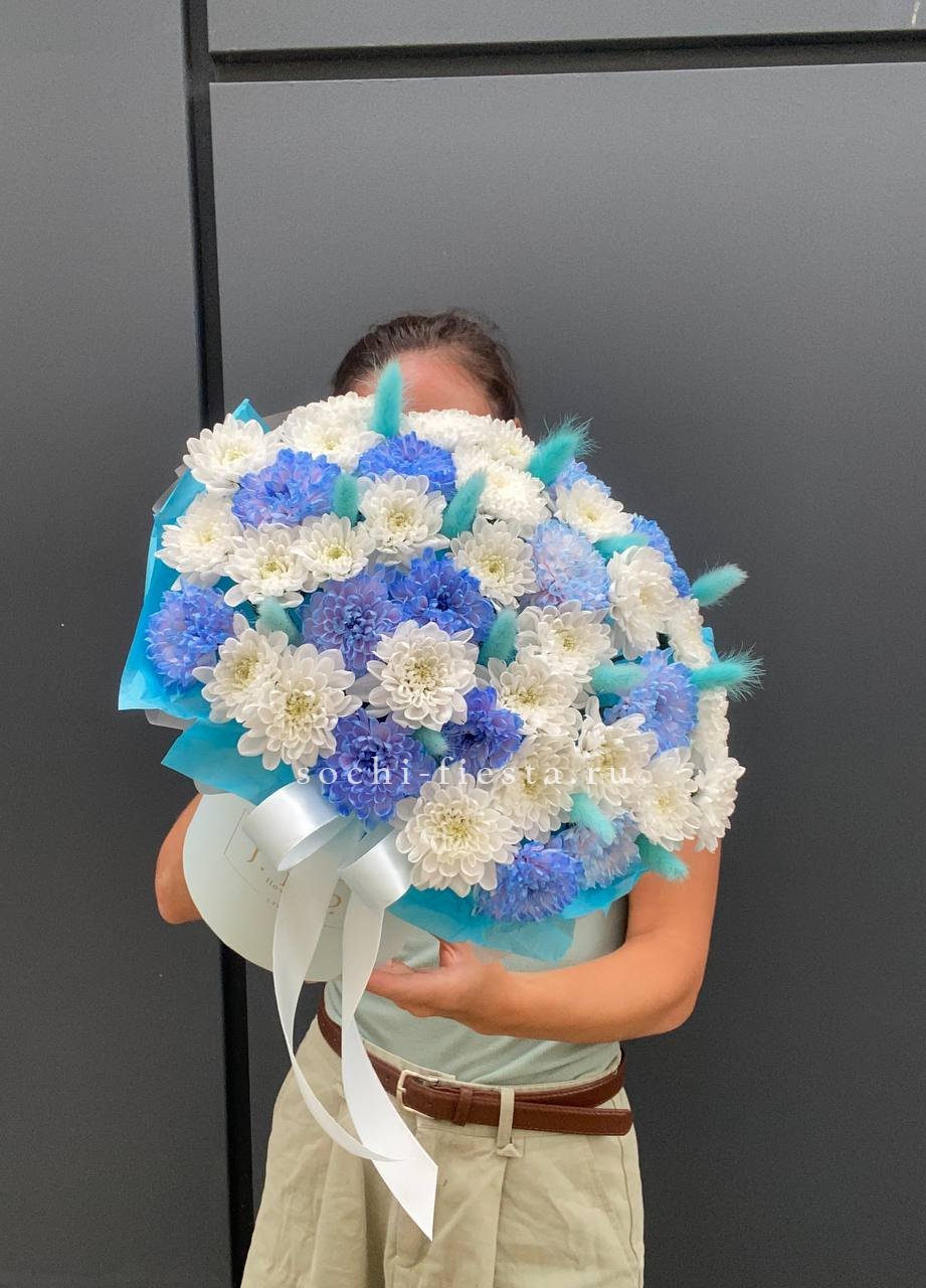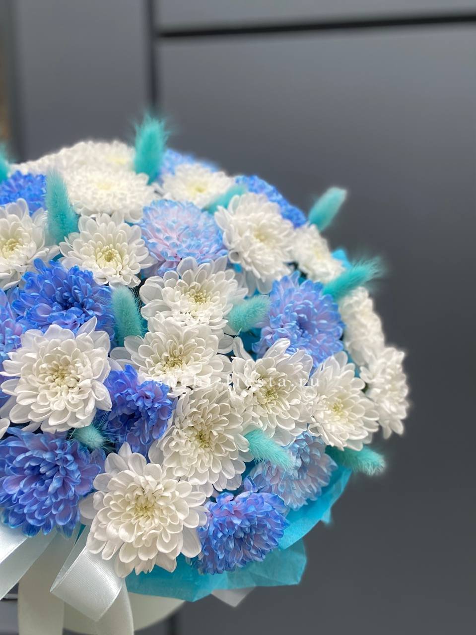 Состав: хризантема кустовая, лагурус, коробка , оформление
