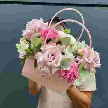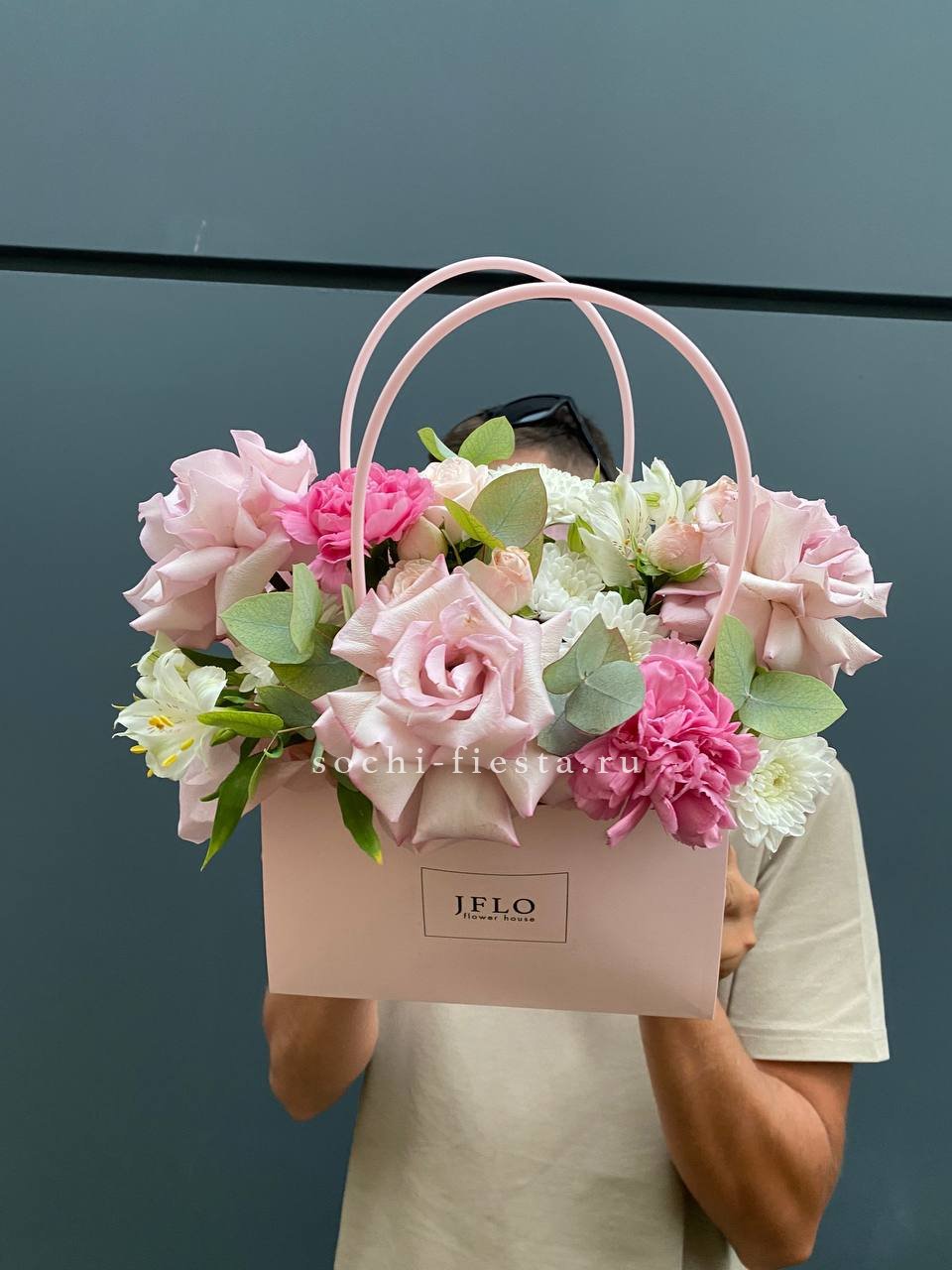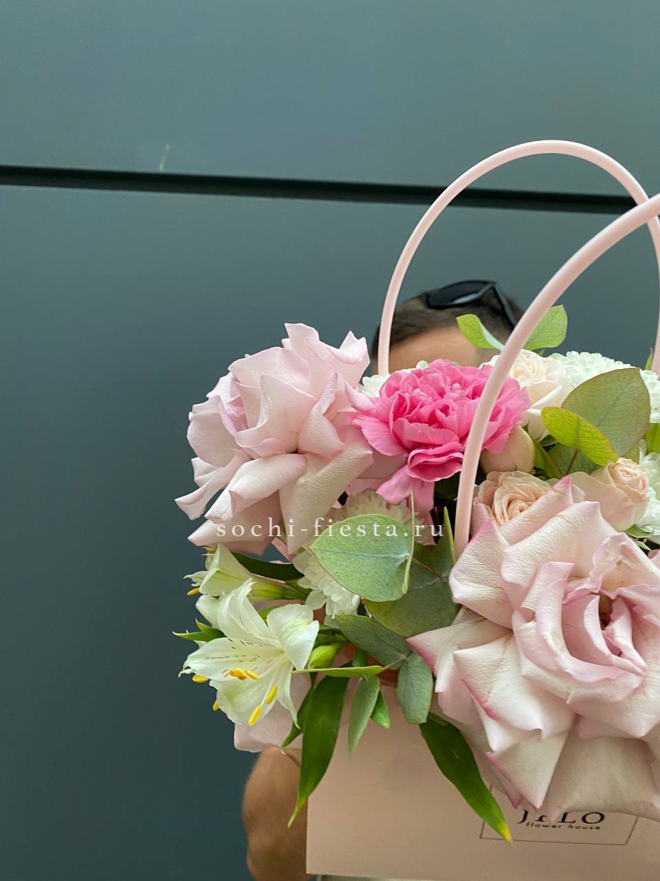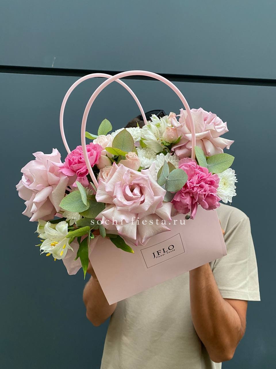 Состав: розовая роза, диантус, альстромерия, кустовая роза, хризантема