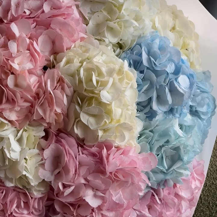 Гортензия — это декоративное кустарниковое растение, известное своими крупными, пышными соцветиями и богатой палитрой оттенков. Она широко используется во флористике благодаря своей эффектности и продолжительному цветению. Гортензия символизирует благодарность, искренность и гармонию. Ее крупные цветочные кисти делают ее популярным элементом композиций и букетов.