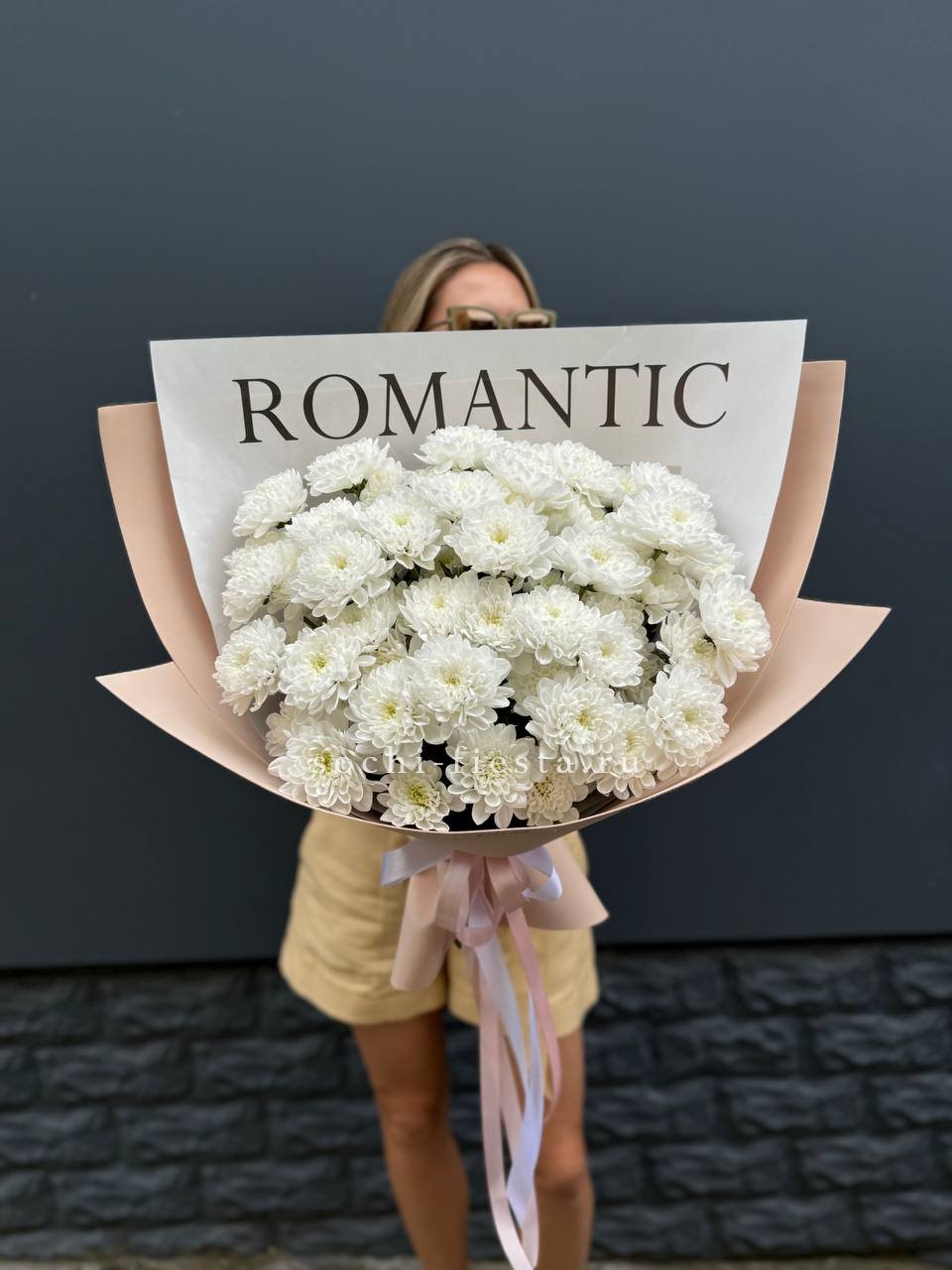 Состав: хризантема кустовая -9 шт., лента, дизайнерская пленка