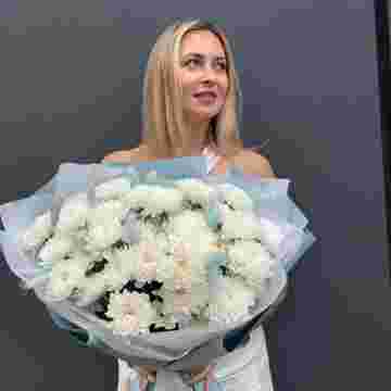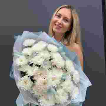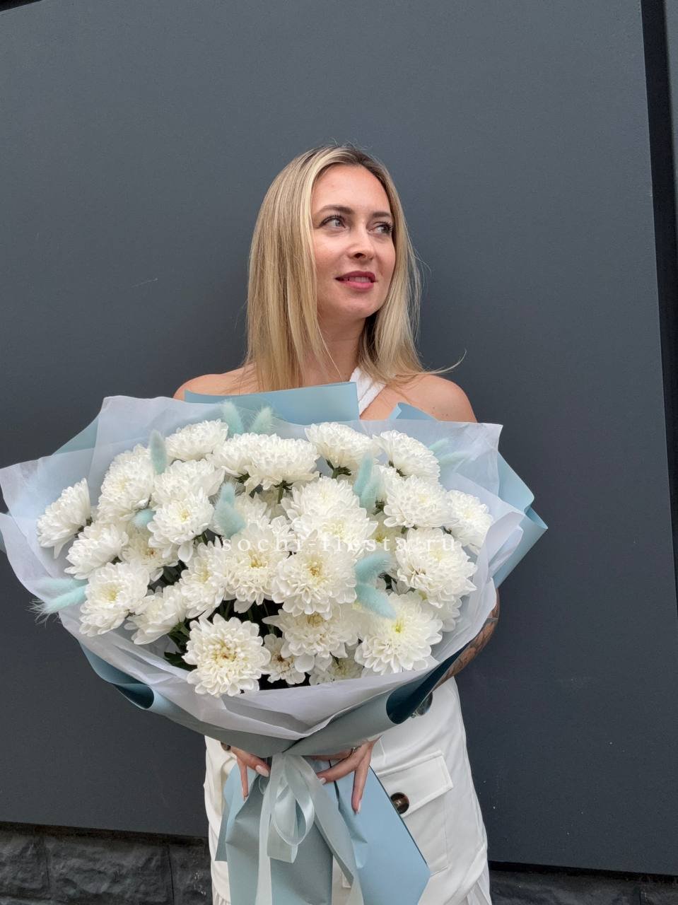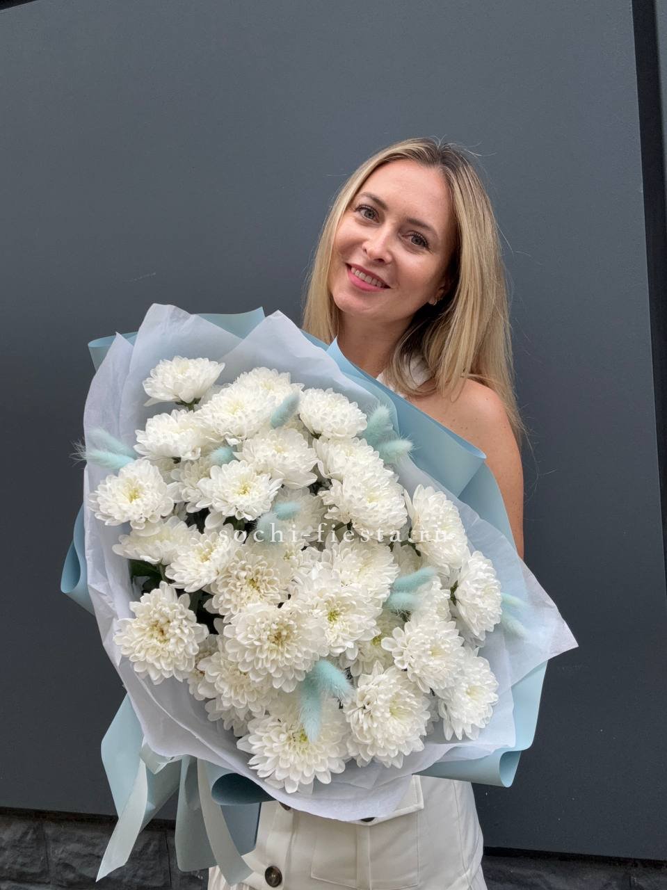 Состав: хризантема кустовая - 9 шт.,лагурус  , пленка,  лента