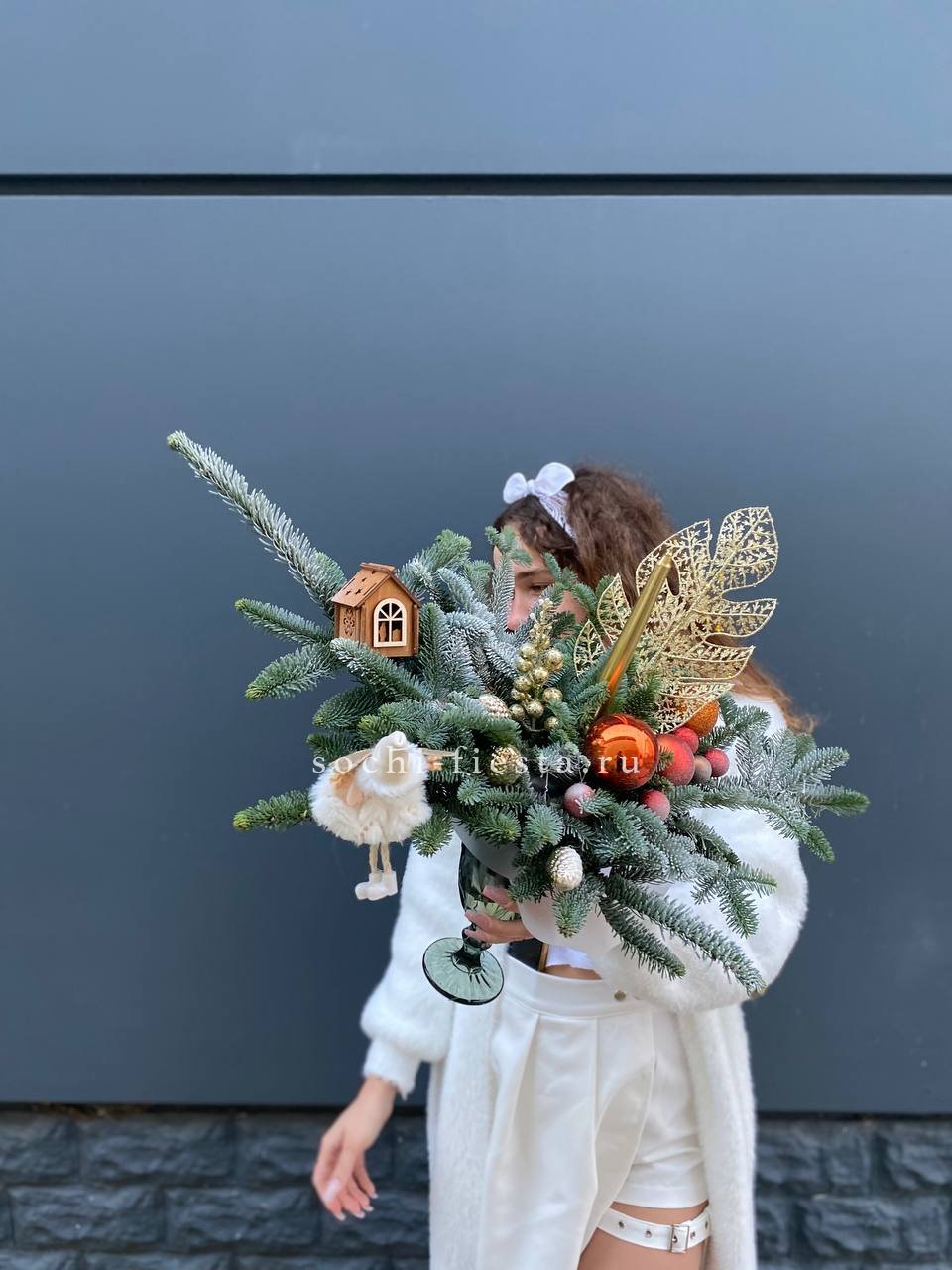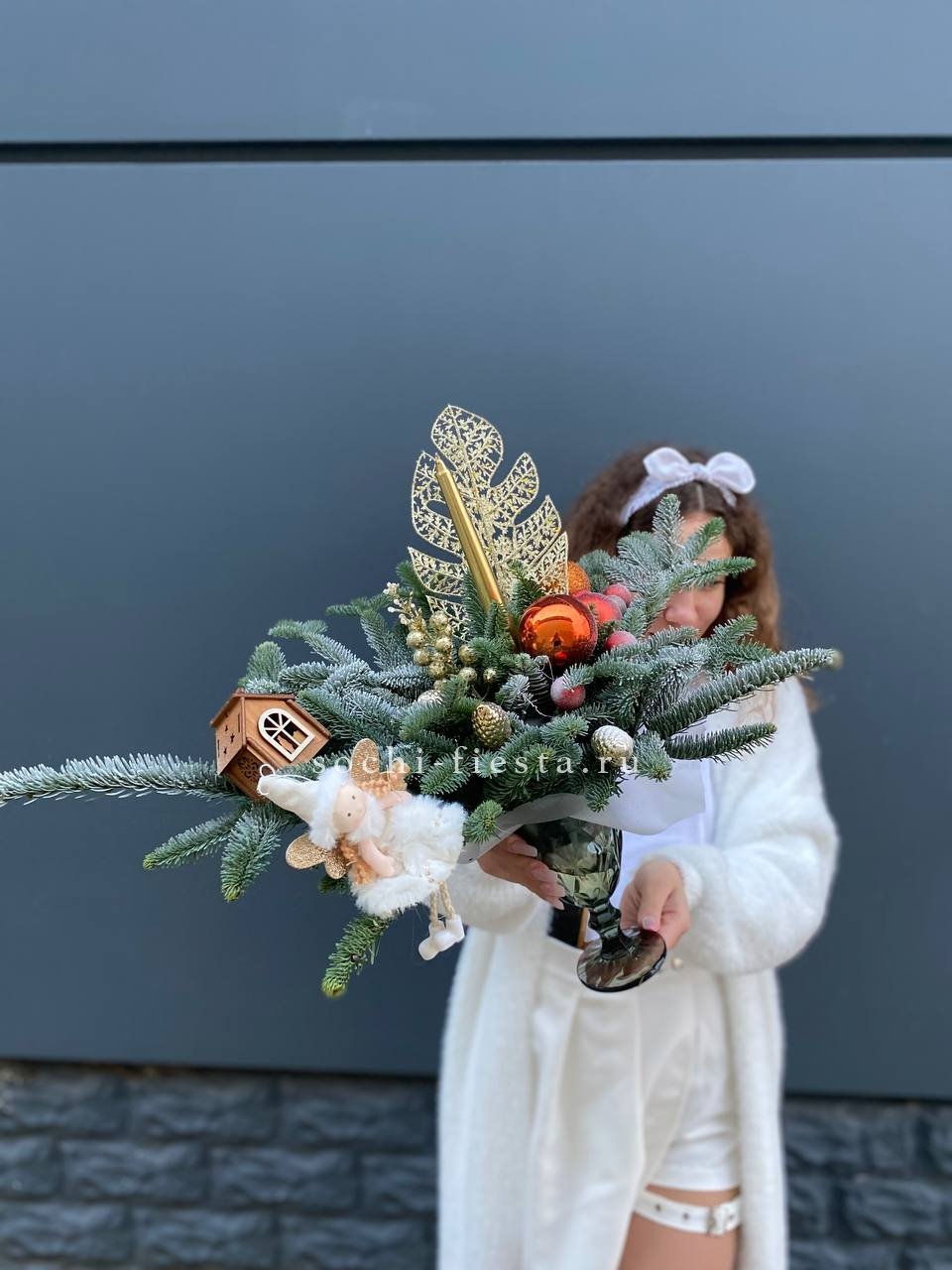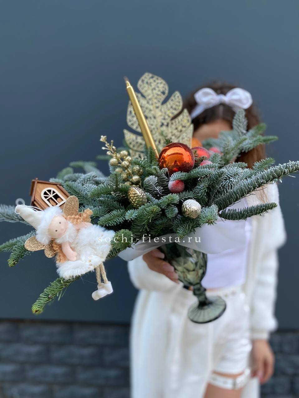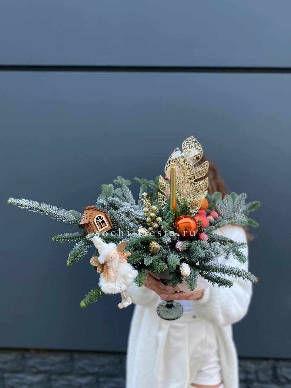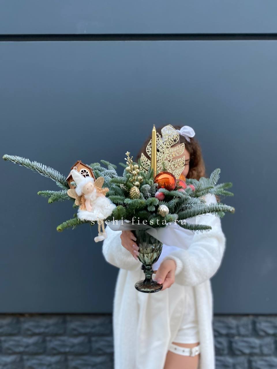 Состав: нобилис, бокал, оазис, свечи, новогодние игрушки, декор
