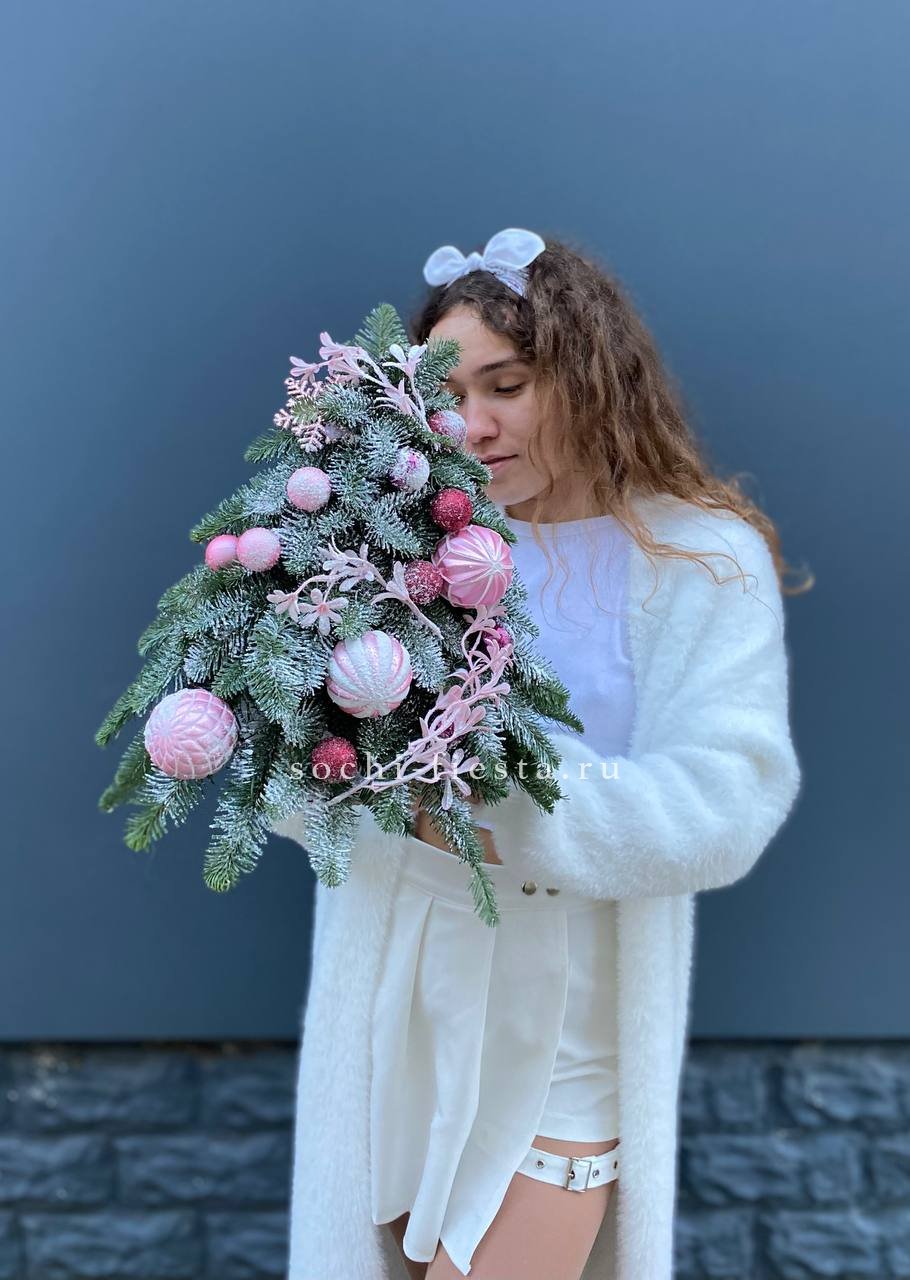 Состав: датский нобилис, кашпо, оазис, новогодние игрушки,декор