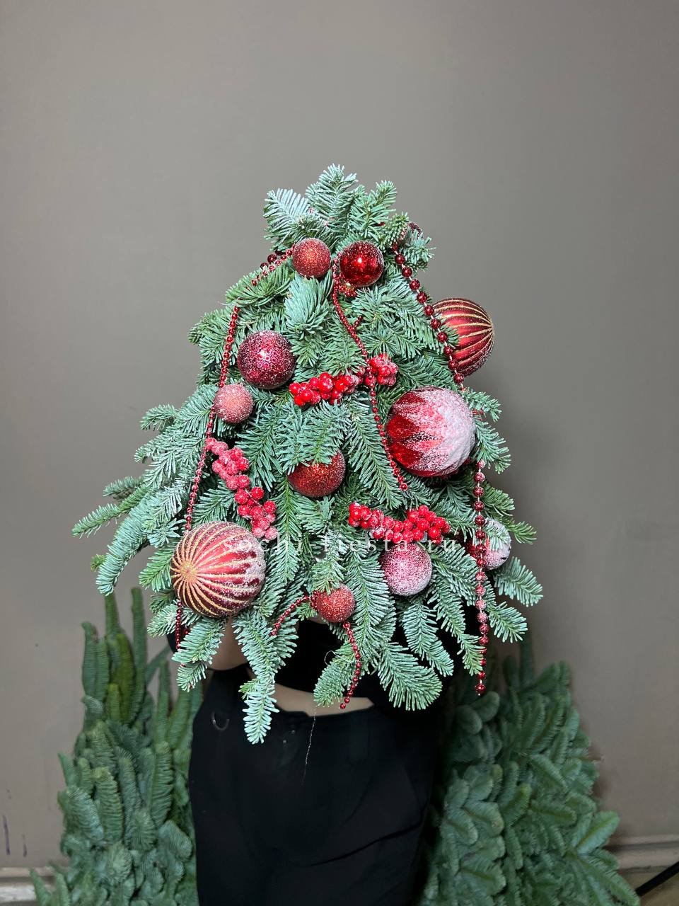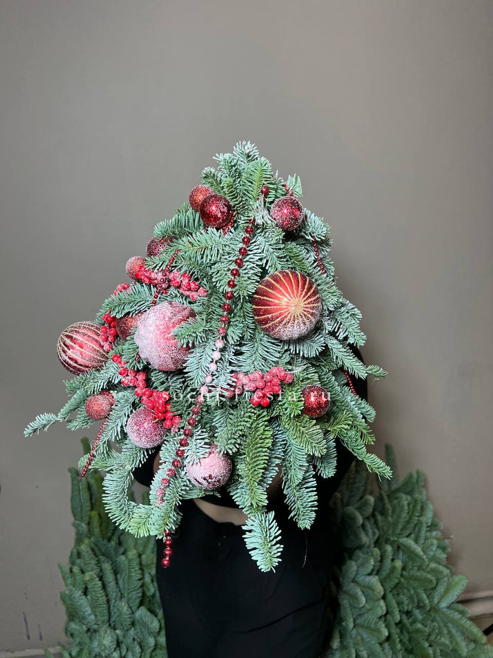 Состав: ёлочка с красными игрушками.
