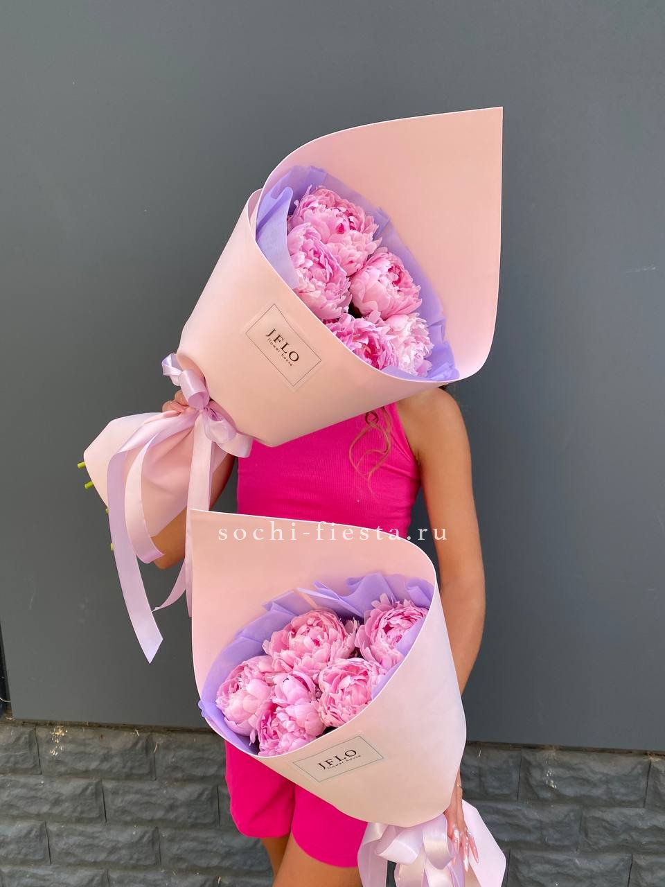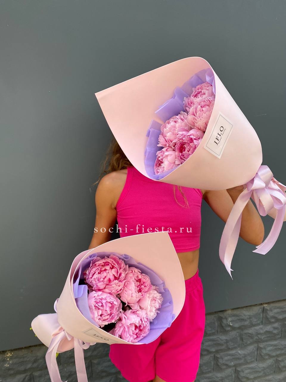 На фото представлены два букета, цена за один букет на выбор количество пионов