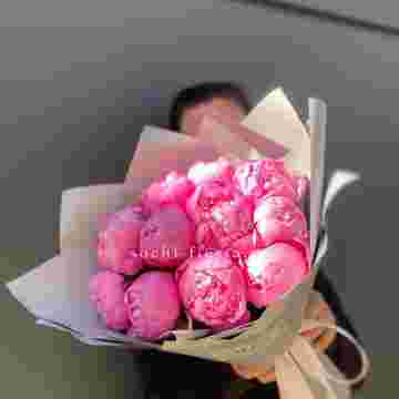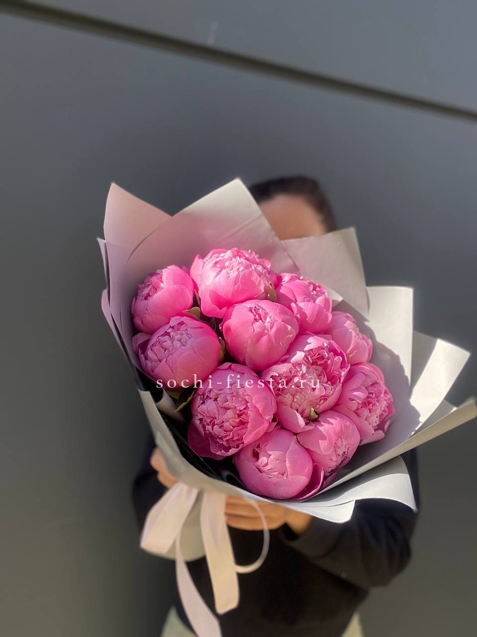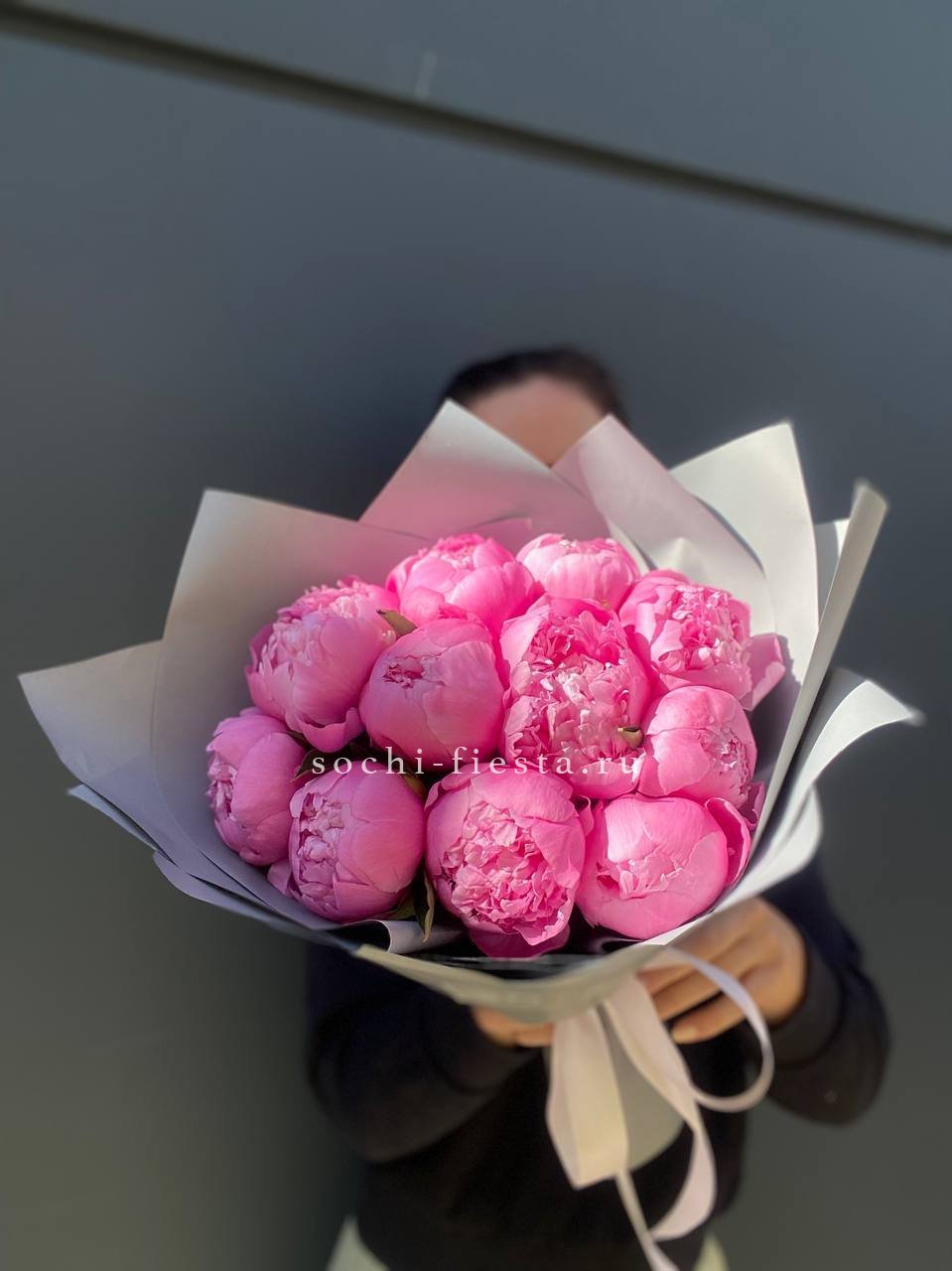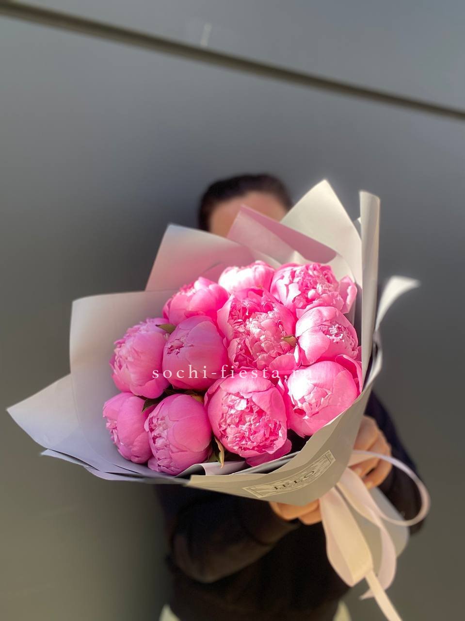 Состав: розовые пионы - 11 шт., лента, упаковка