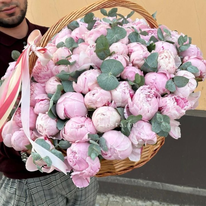 Корзина 555 пионов