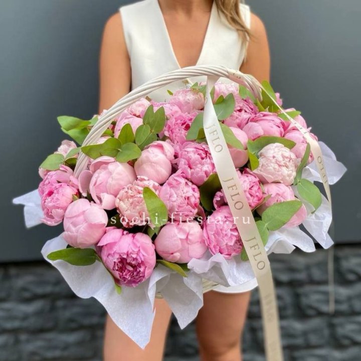 29 пионов в корзине