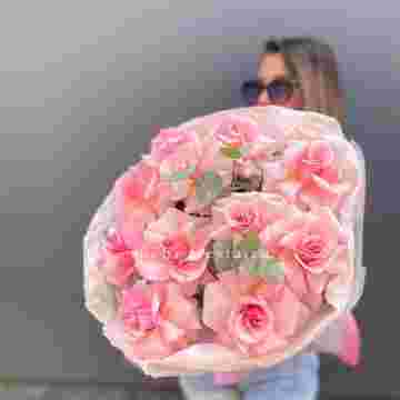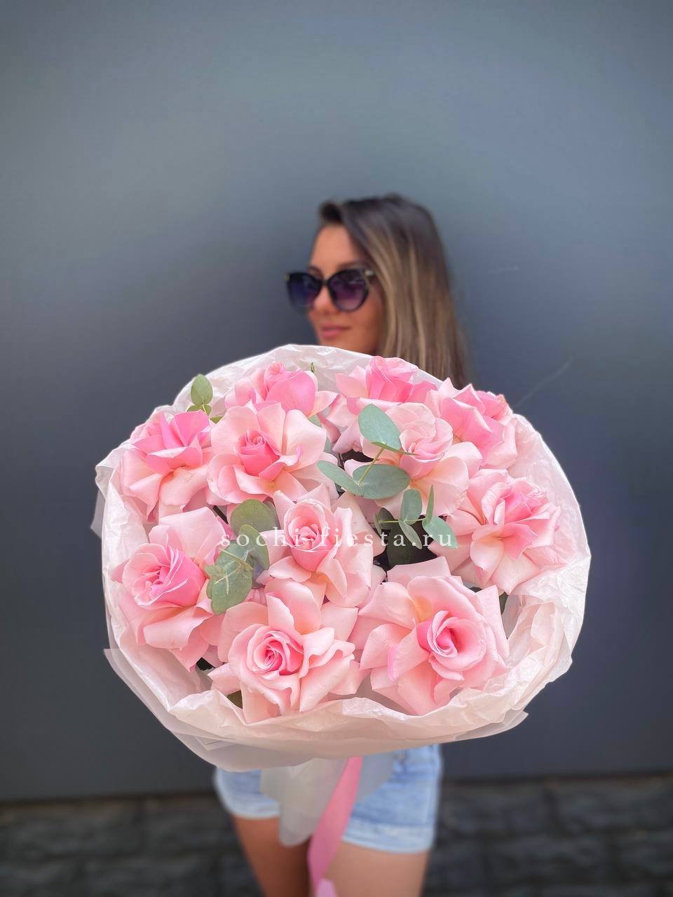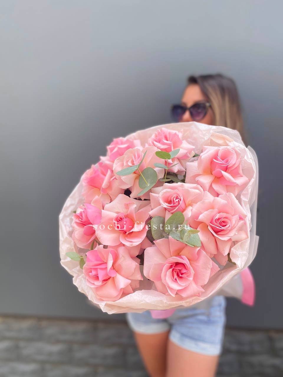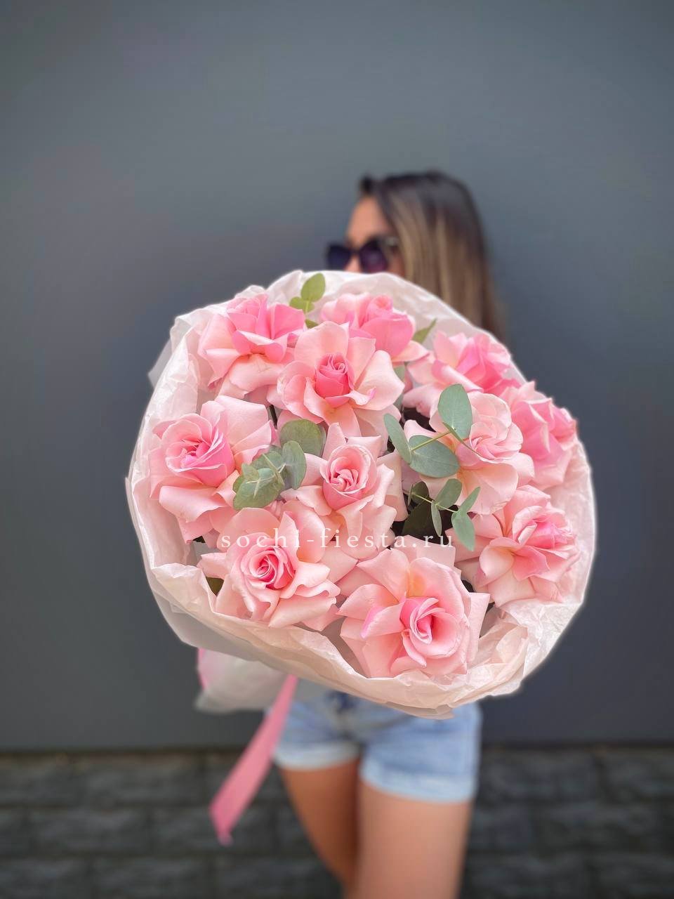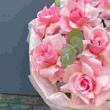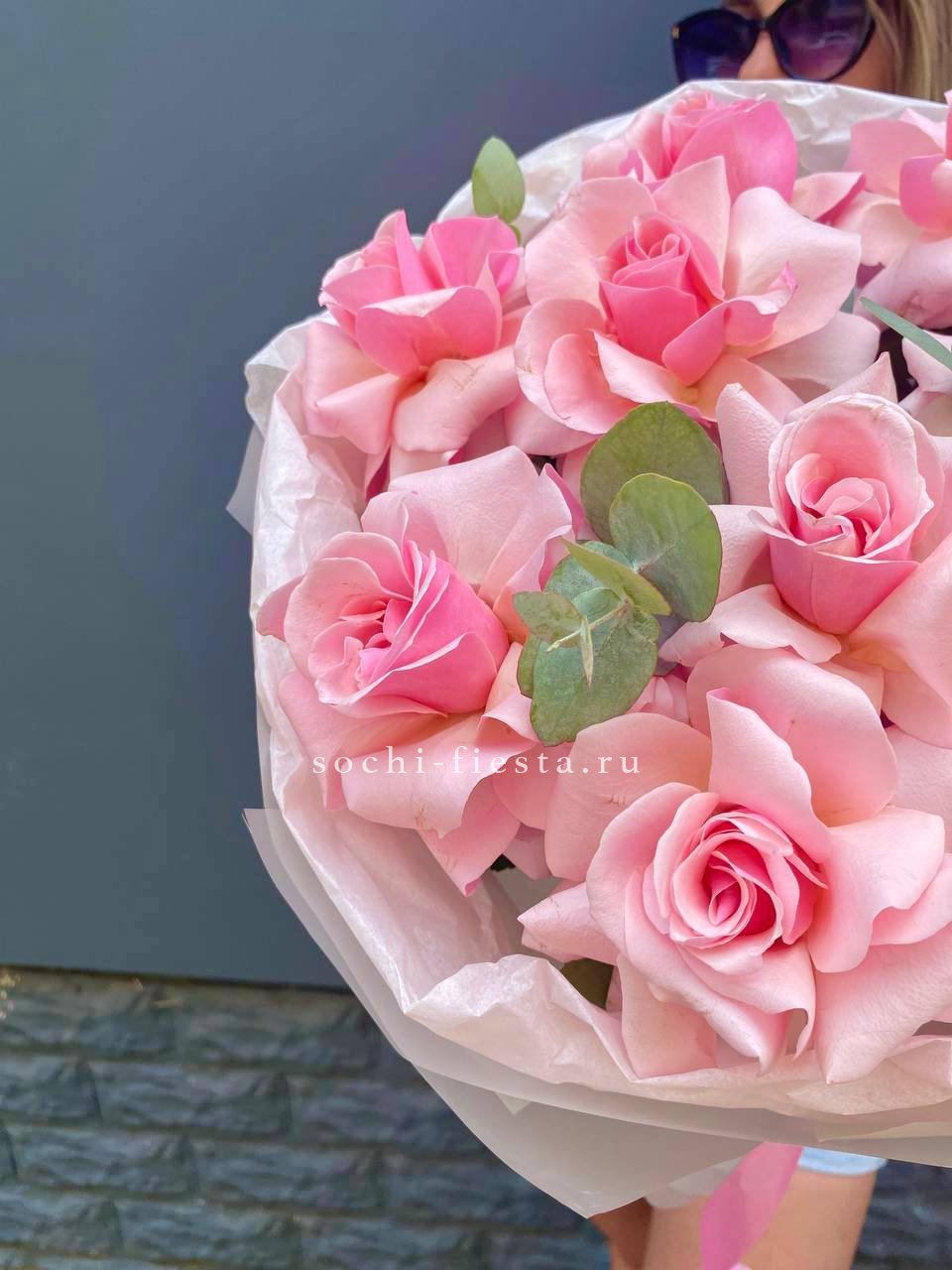 Состав букета на фотографии: вывернутые розы - 11 шт., эвкалипт-1шт, лента, авторская упаковка