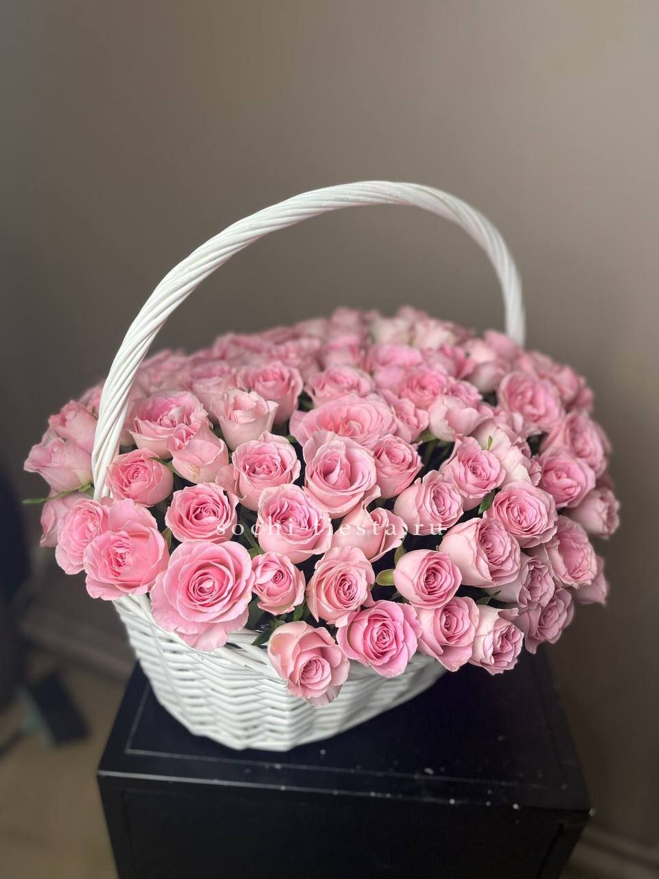 101 розовая роза в корзине