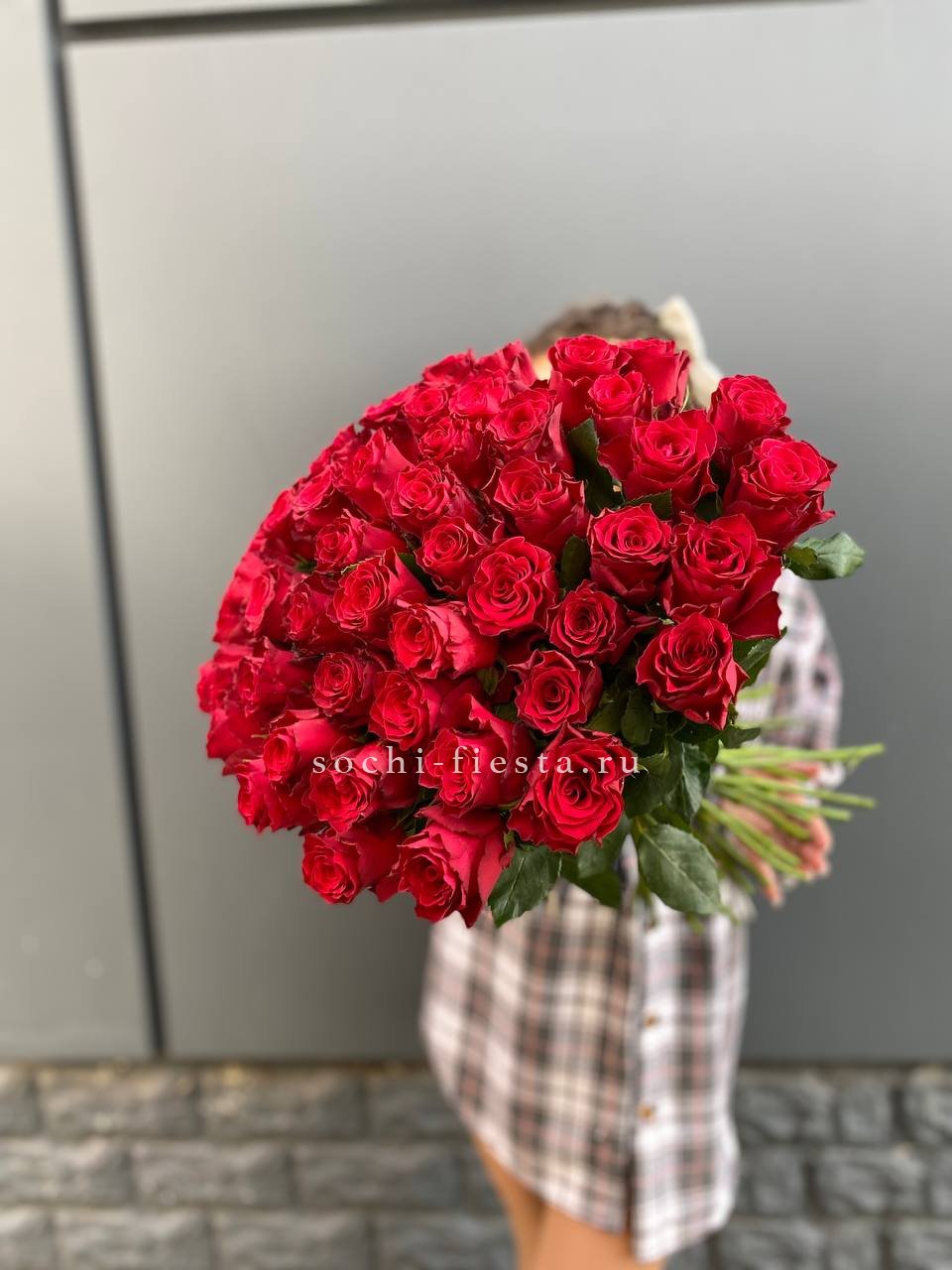 Состав: 51 красная роза, лента