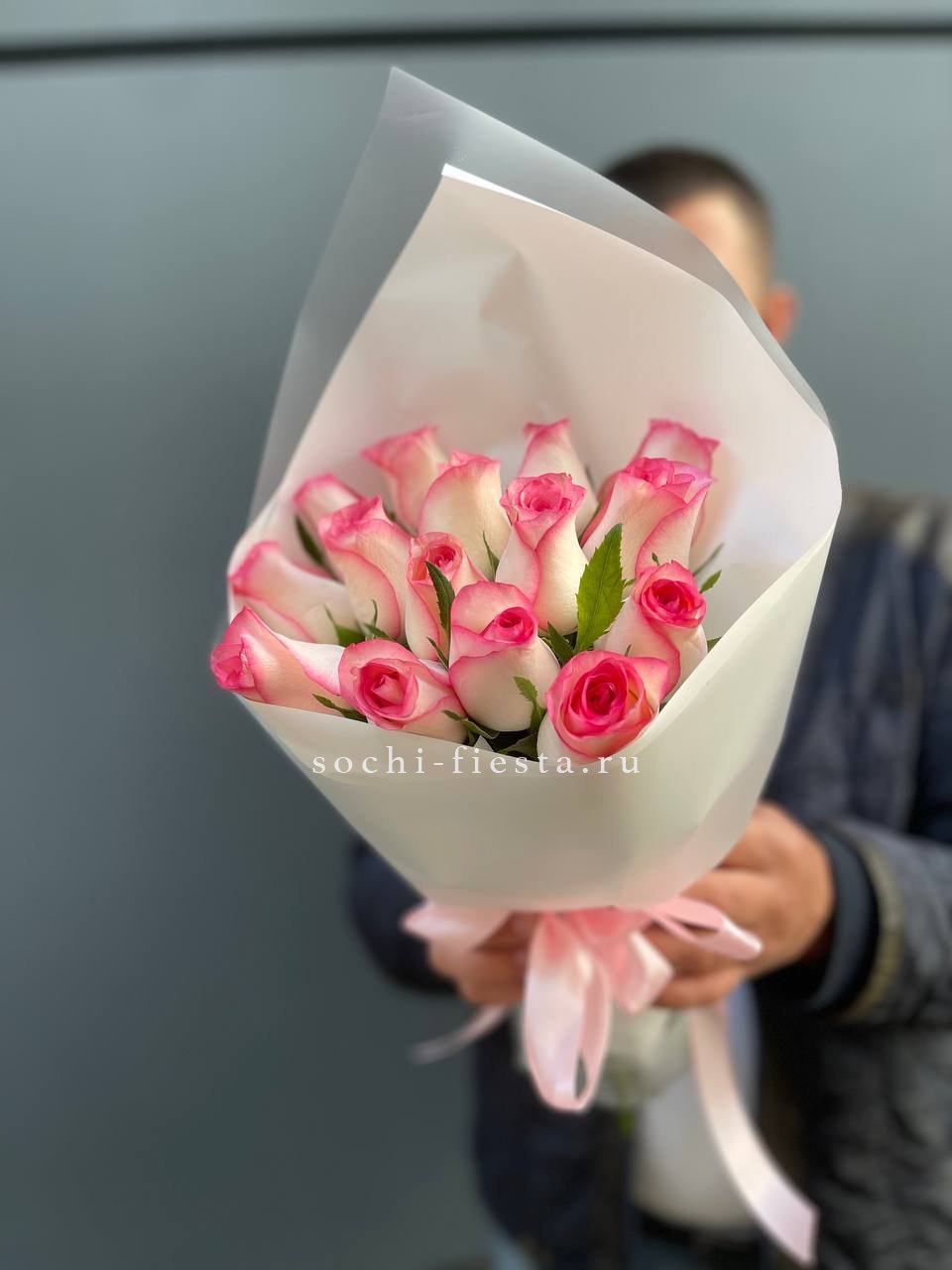 Состав: 15 роз сорта Джумилия, лента, пленка