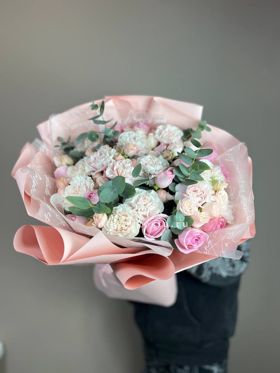 Состав букета на фотографии: вывернутые розы - 11 шт., эвкалипт-1шт, лента, авторская упаковка