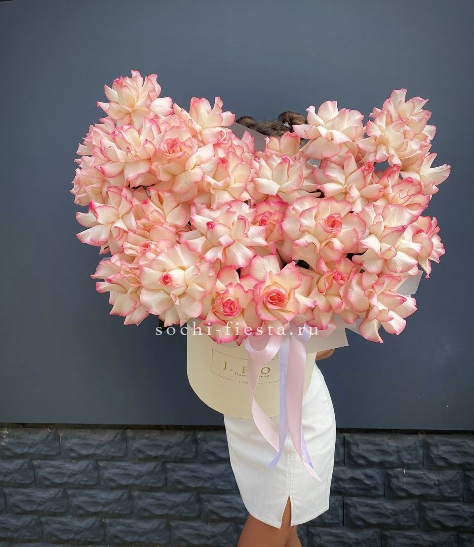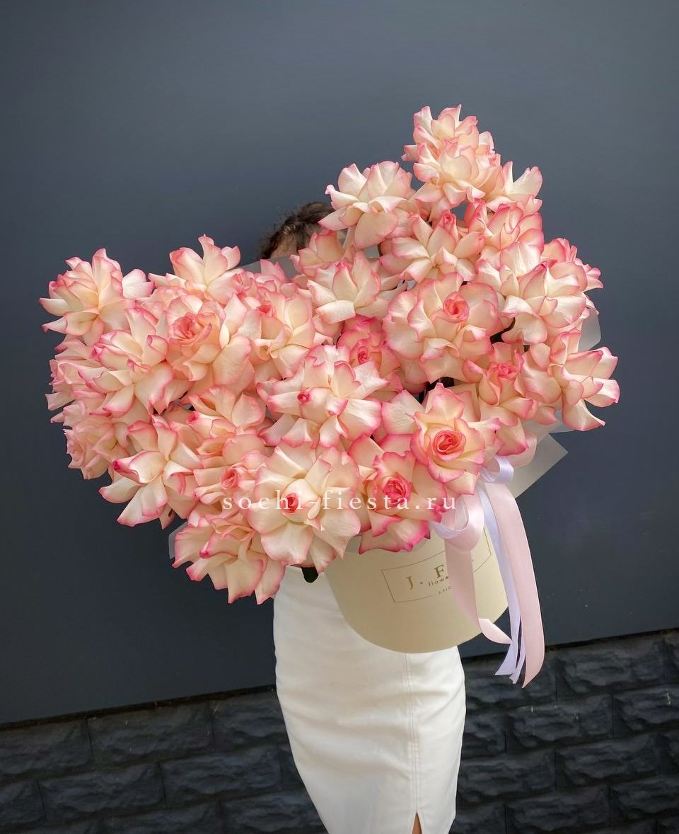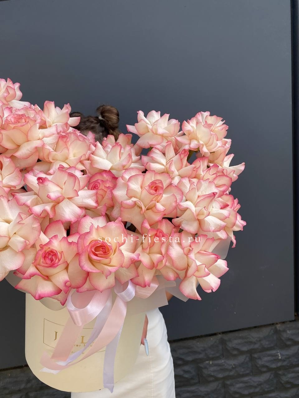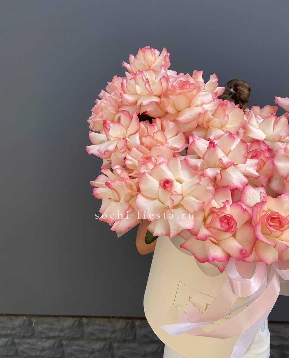 Состав: вывернутые  розы Джумилия - 31 шт., цилиндр D25, лента, упаковка