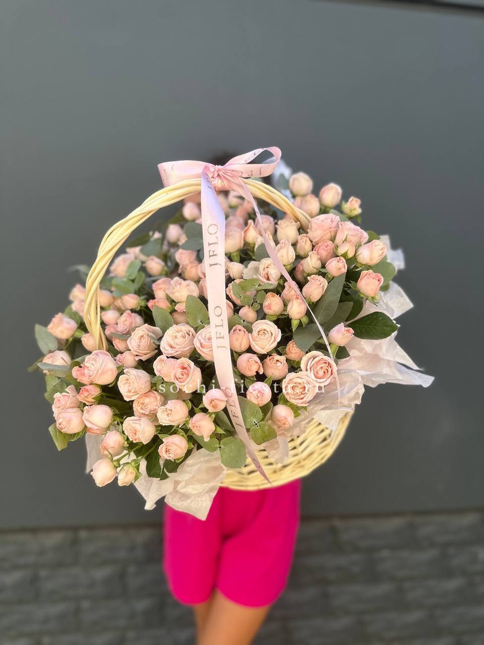 Корзина кустовых пионовидных роз