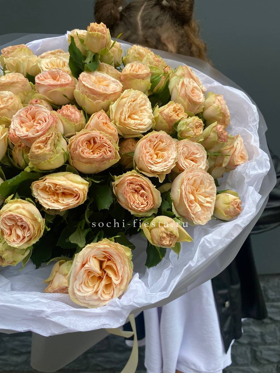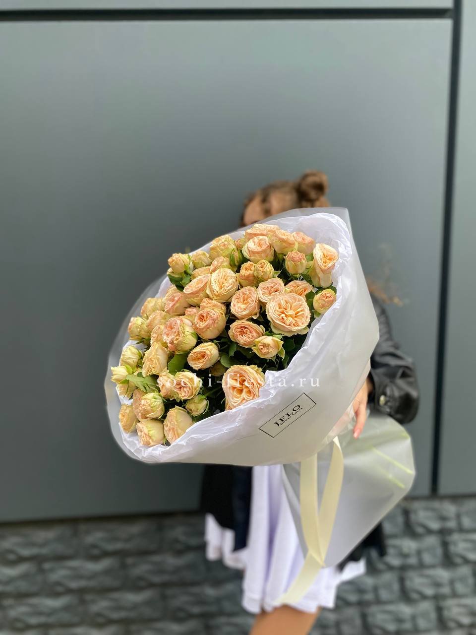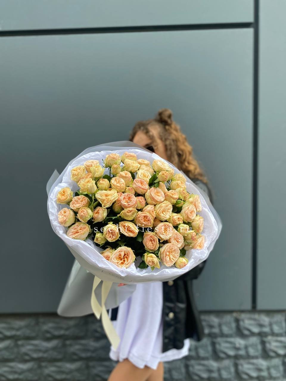 Состав: 15 кустовая пионовидная роза, лента, дизайнерская упаковка